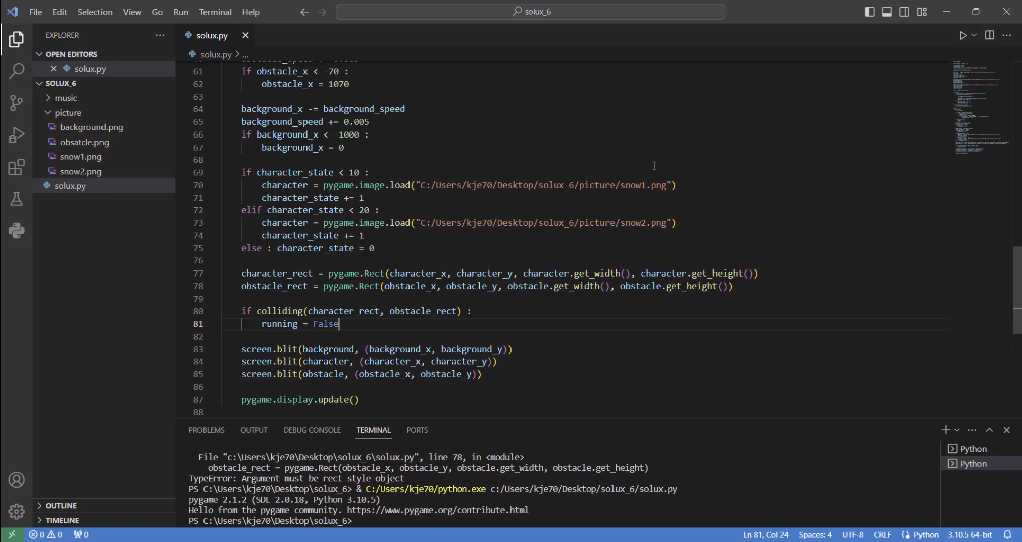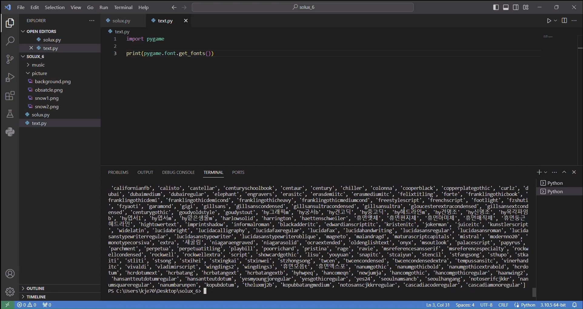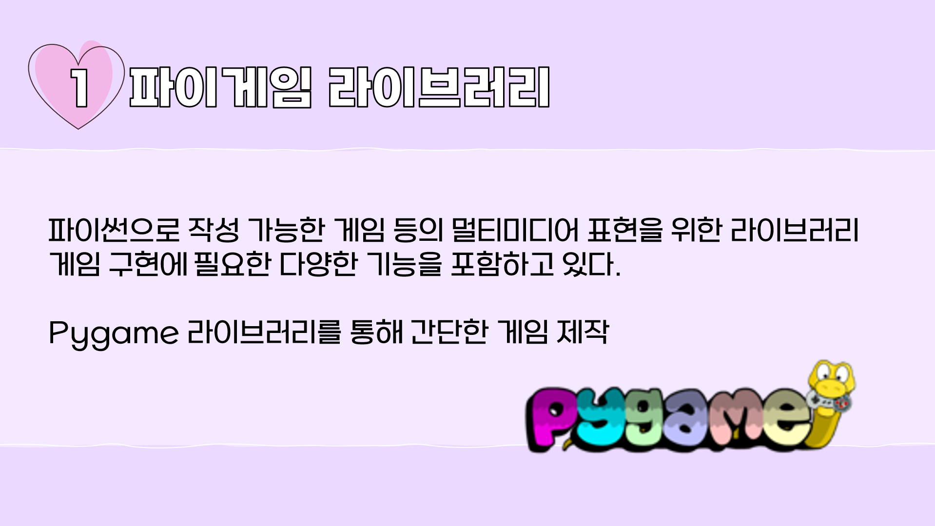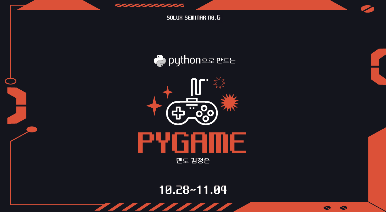 2학기에 진행된 6차 세미나 주제는 "파이게임으로 게임 만들기" 입니다.