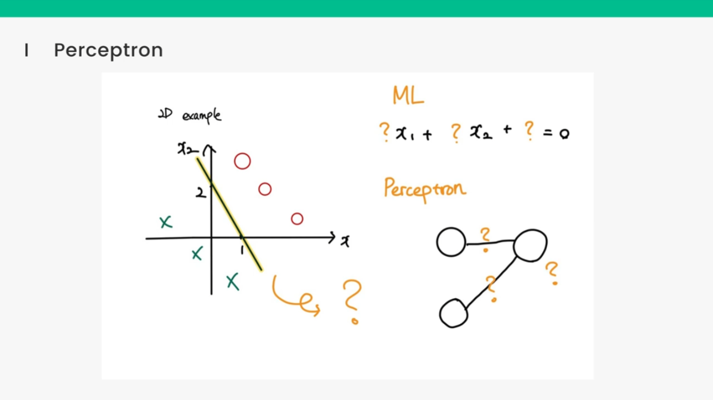 Perceptron에 대해 학습하고, 그 Perceptron을 이용해서 다음에 들어올 데이터가 어느 클래스에 들어갈지 계산합니다.