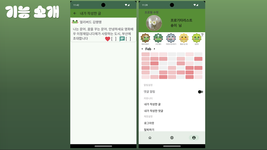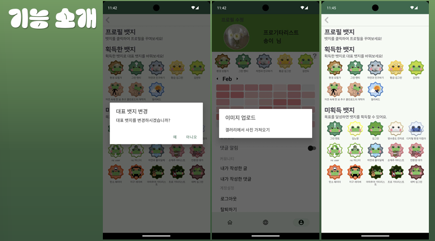 - 리워드 (다양한 글을 작성하면 얻을 수 있는 23가지의 뱃지와 닉네임)