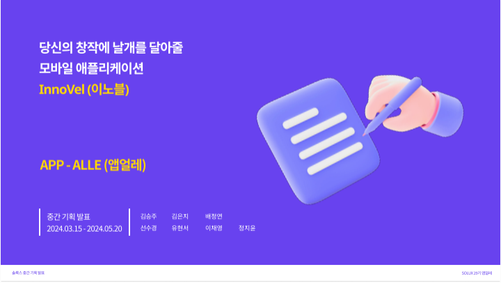 사용자가 원하는 장르, 테마나 줄거리를 선택하면 AI 기반으로 추천 플롯을 제공해 쉼게 소설을 창작하고 공유하는 서비스