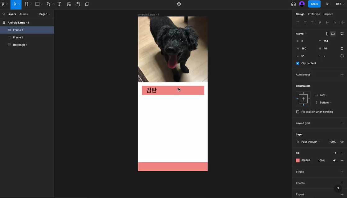 원하는 크기의 프레임을 만든 후 도형이나 텍스트를 넣어서 간단한 레이아웃을 구성해봅니다.