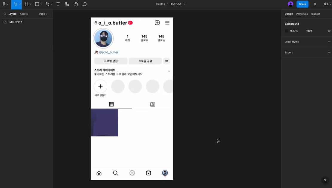 이번 세미나의 과제는 인스타그램의 프로필 설정창을 따라 디자인해보는 것이었습니다.
