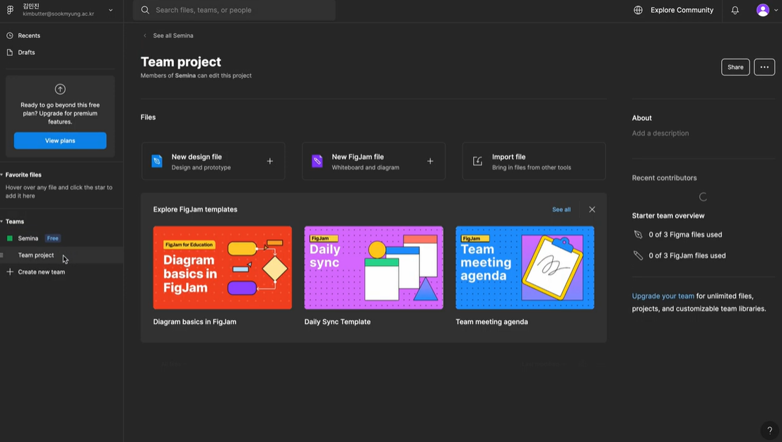 위 사진은 피그마에 가입하고 로그인을 하면 제일 먼저 볼 수 있는 화면인데요,