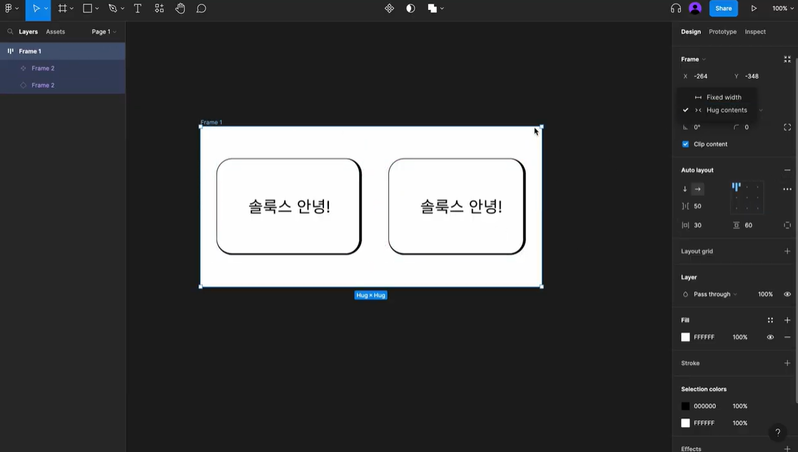피그마에서는 '오토 레이아웃'이라는 기능을 활용해 이를 쉽게 구현할 수 있답니다!
