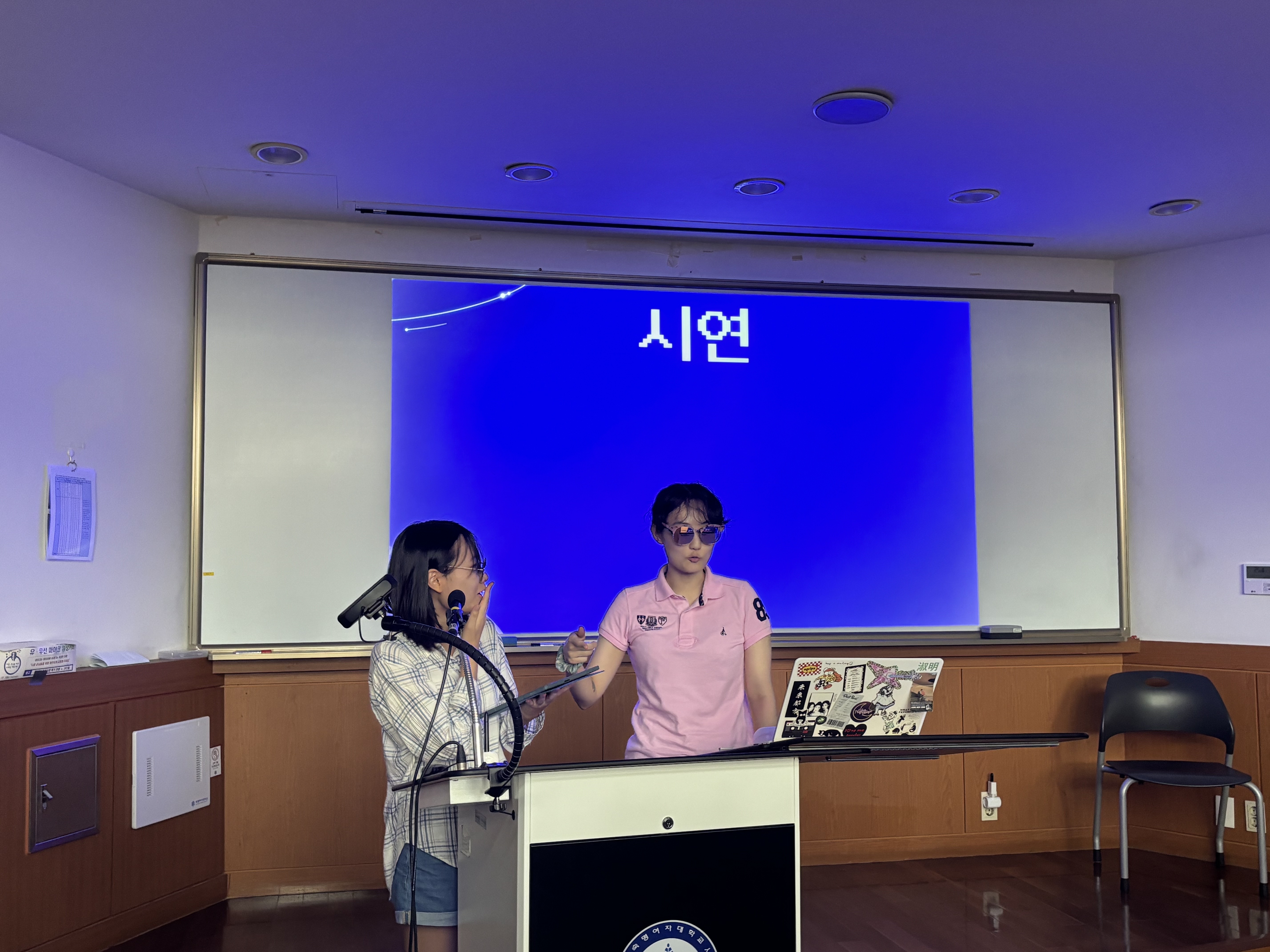 부원들 앞에서 발표하고 서로 질의응답을 나누는 시간을 가졌습니다.