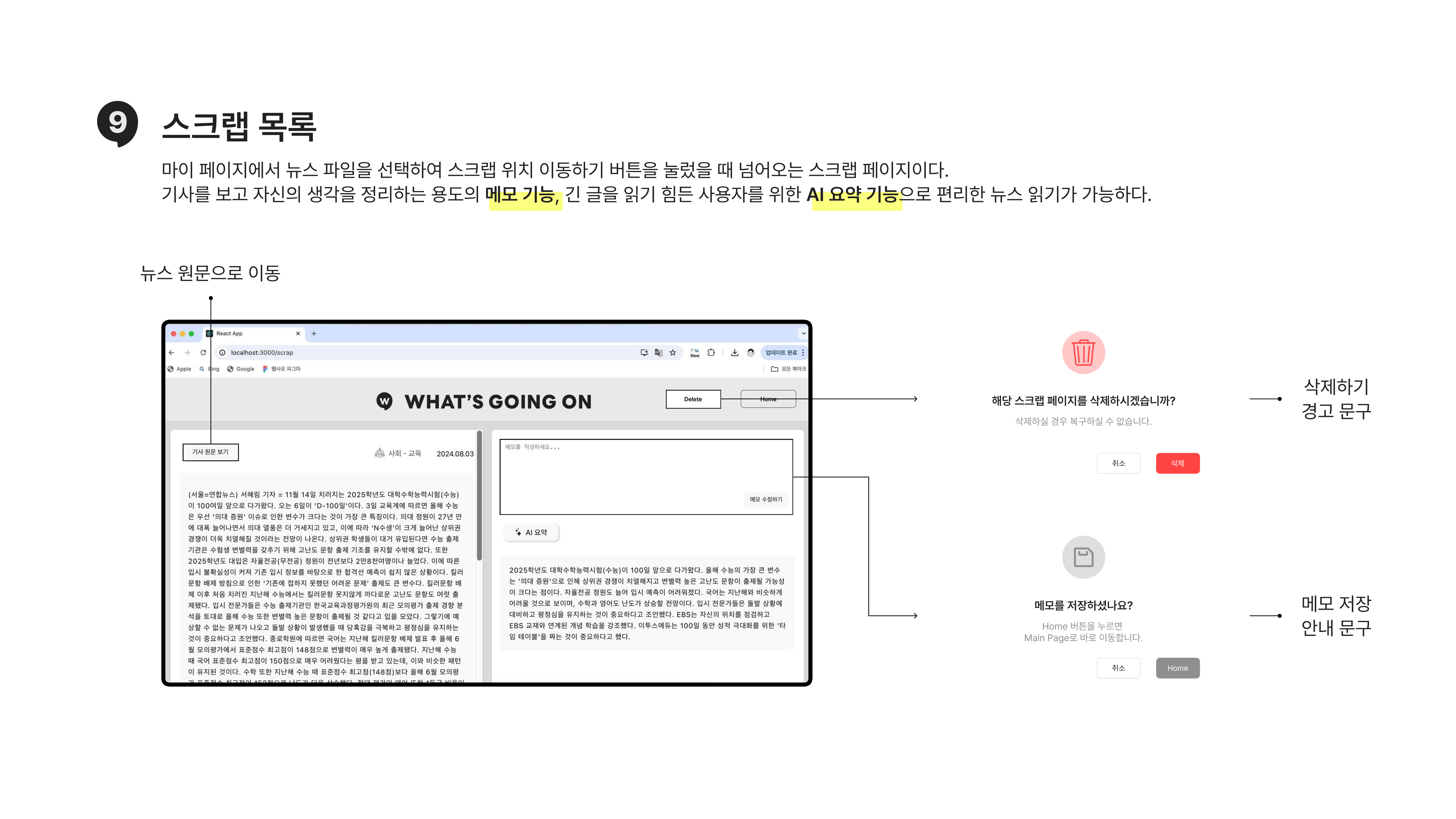- 스크랩 - 메모, AI 요약 기능 구현