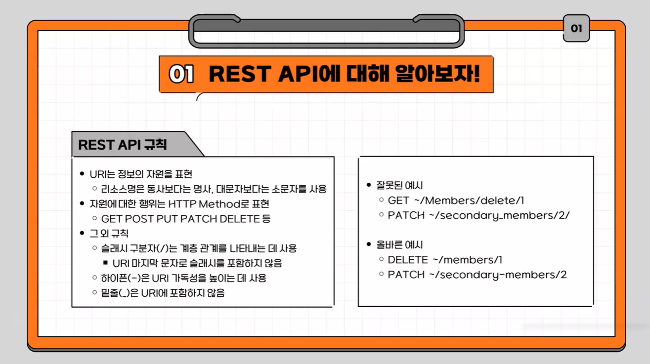 먼저, REST API란 Representational State Transfer의 약자로,