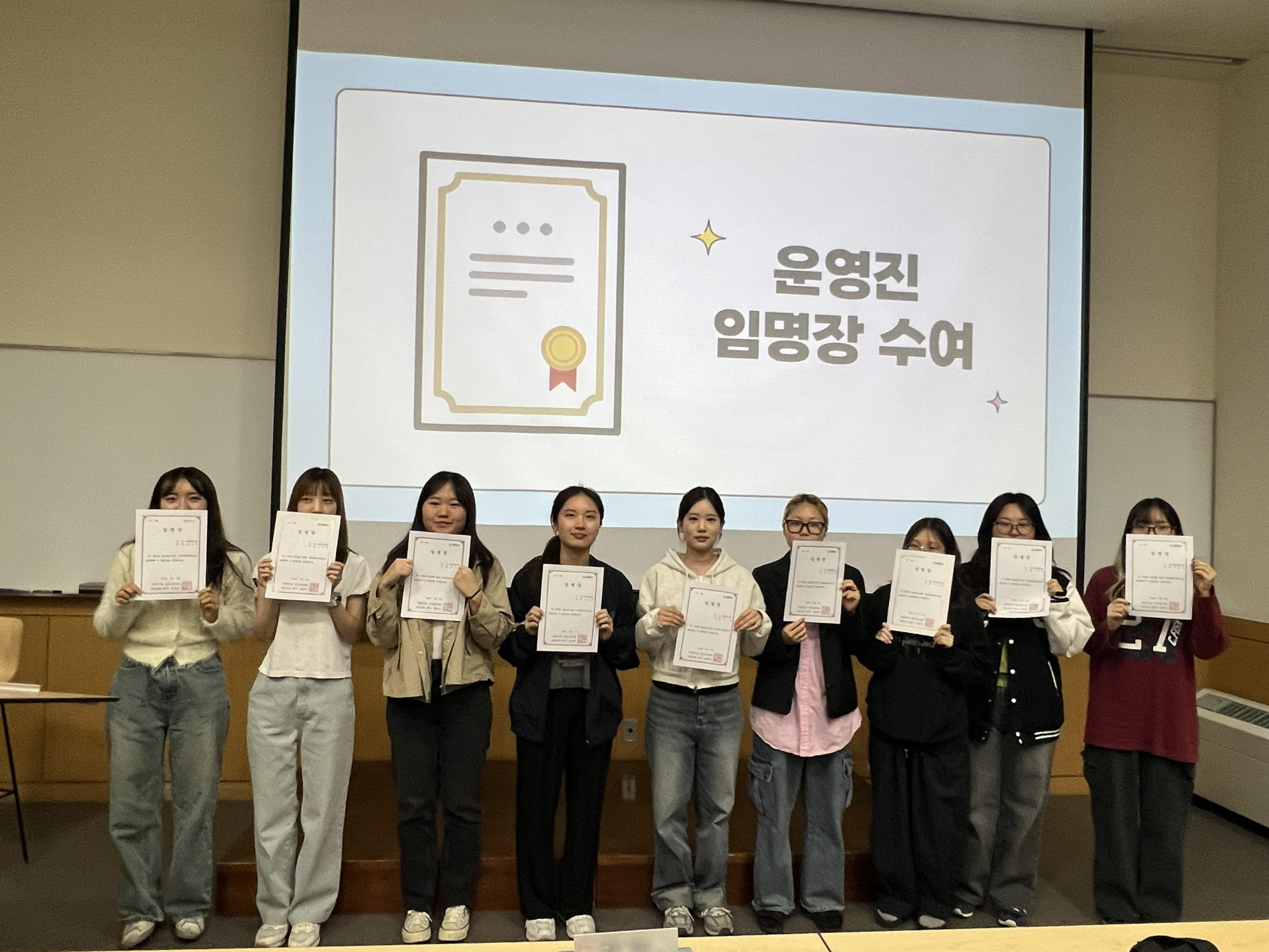 이어서, 간단한 공지사항 전달과 행사 안내, 그리고 새로운 운영진에게 임명장이 수여된 후,