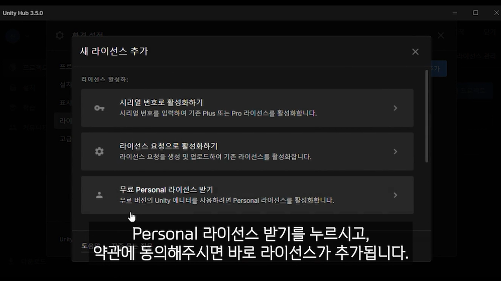 * 유니티 HUB 및 라이선스 다운로드