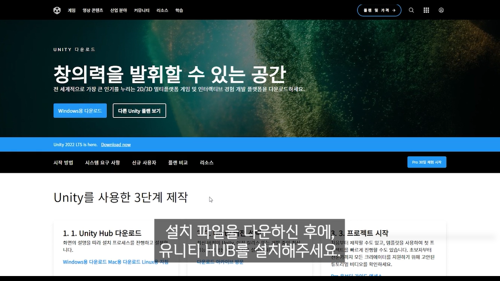 * 유니티 엔진 다운로드