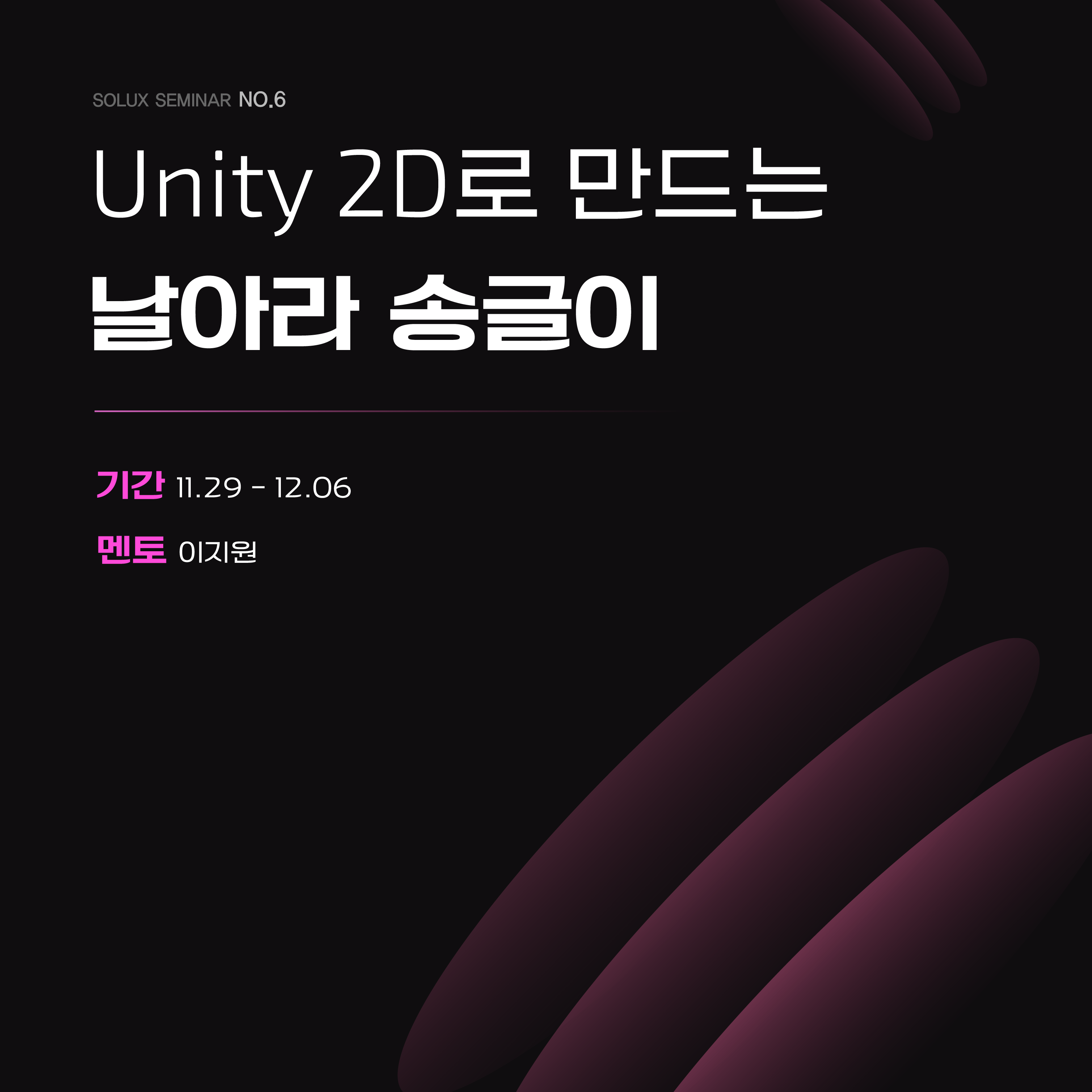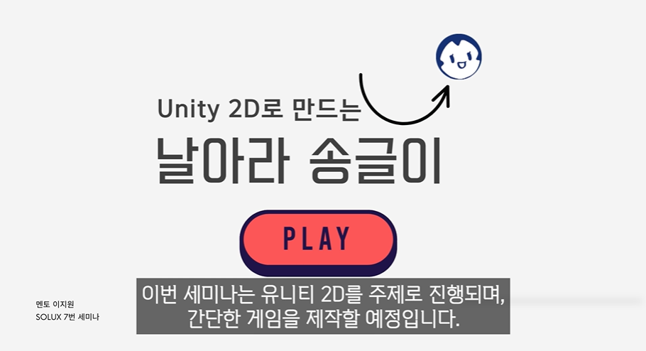 이번 세미나에서는 [Unity 2D로 만드는 날아라 송글이]를 주제로 다뤘는데요!