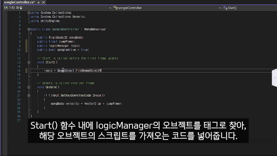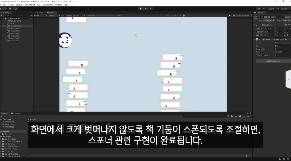 이지원 멘토님께서 송글이 만들기 → 장애물 만들기 → 장애물 스포터 만들기 → 게임 오버 만들기