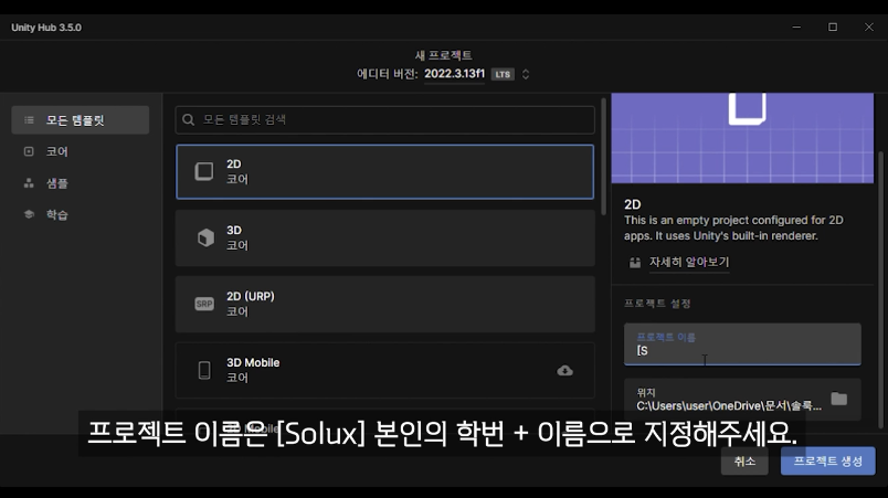 이번 강의에서는 2022.3.13f1 버전을 다운로드했습니다.