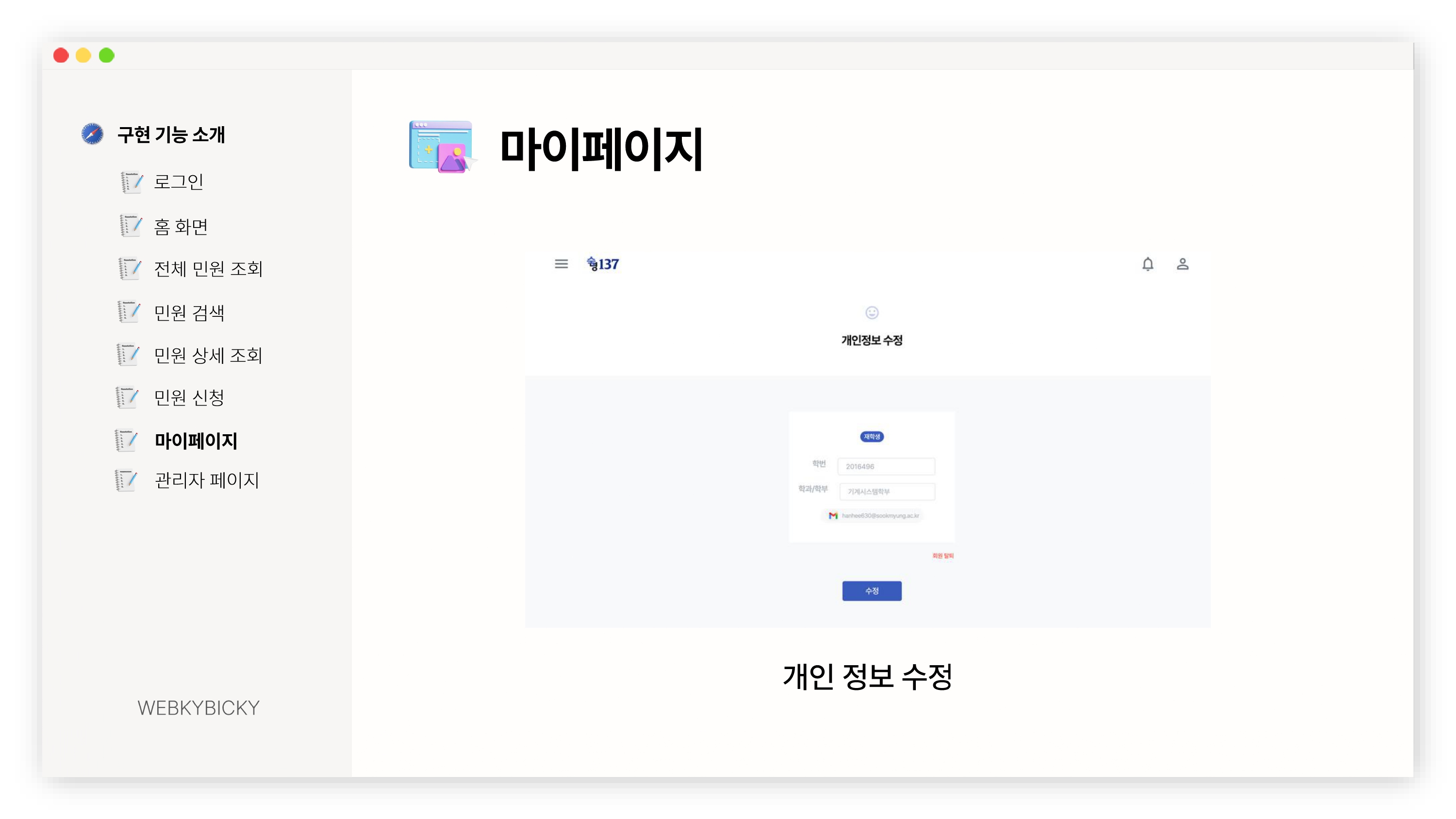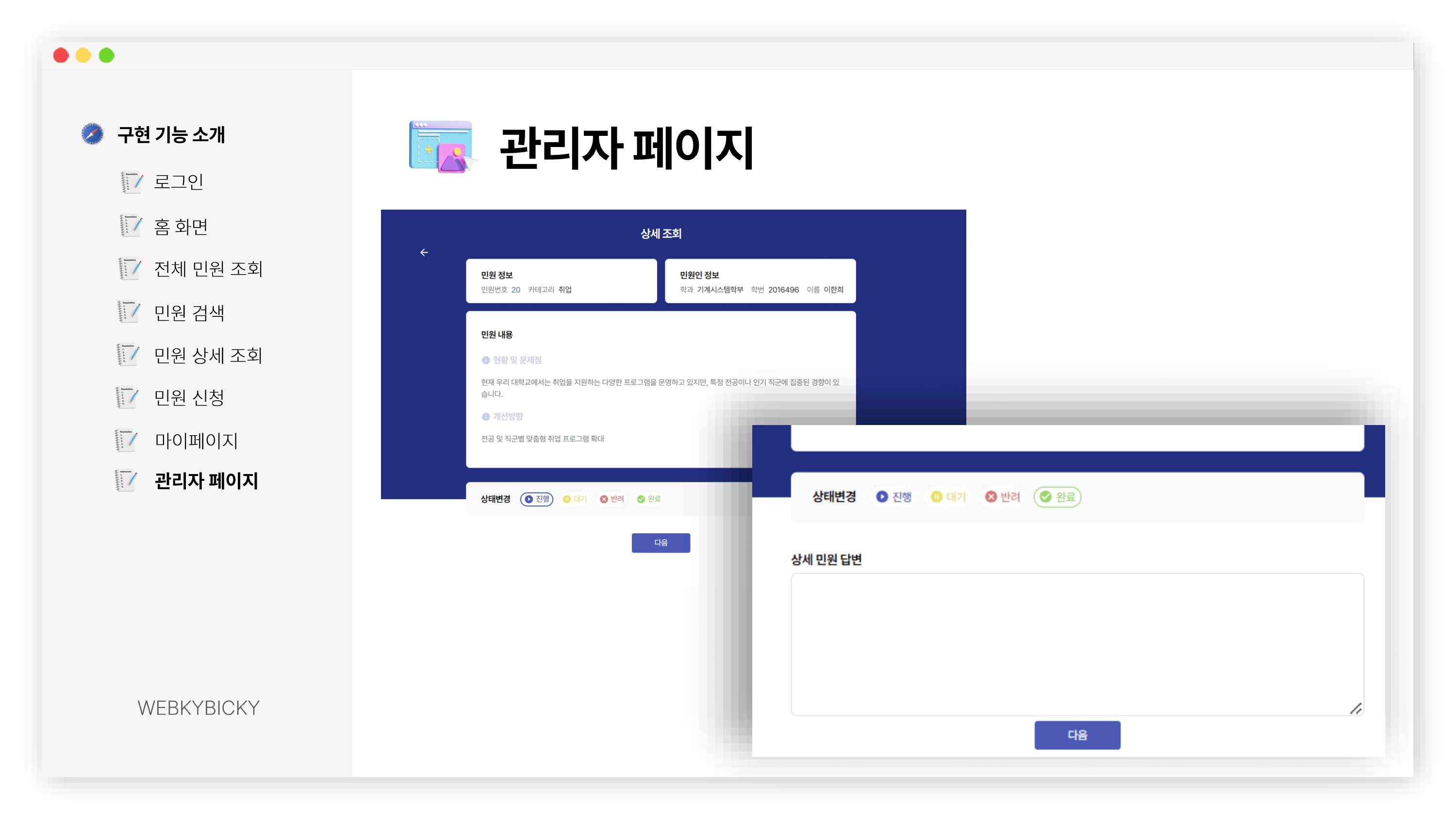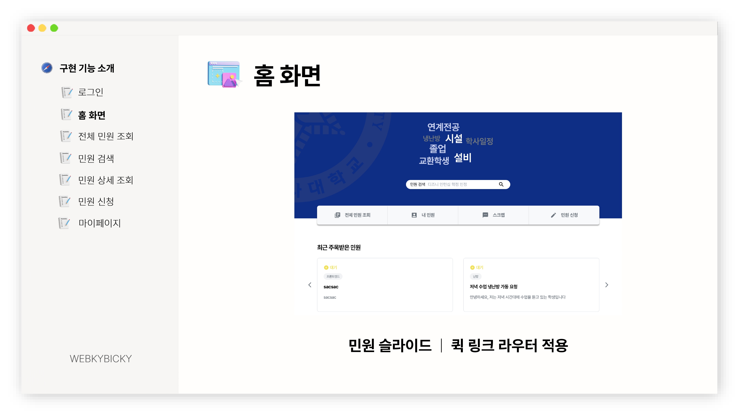 프로젝트 설명 : 기존 숙명여대 민원 시스템의 효율성을 개선한 웹페이지