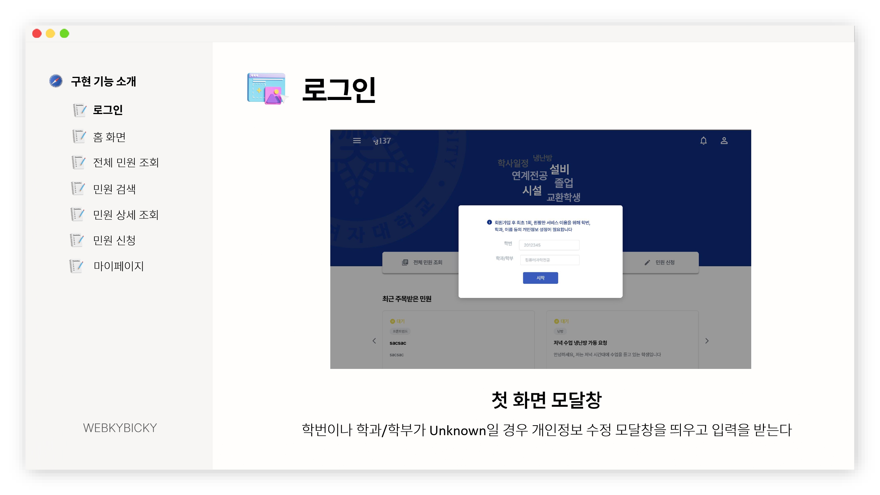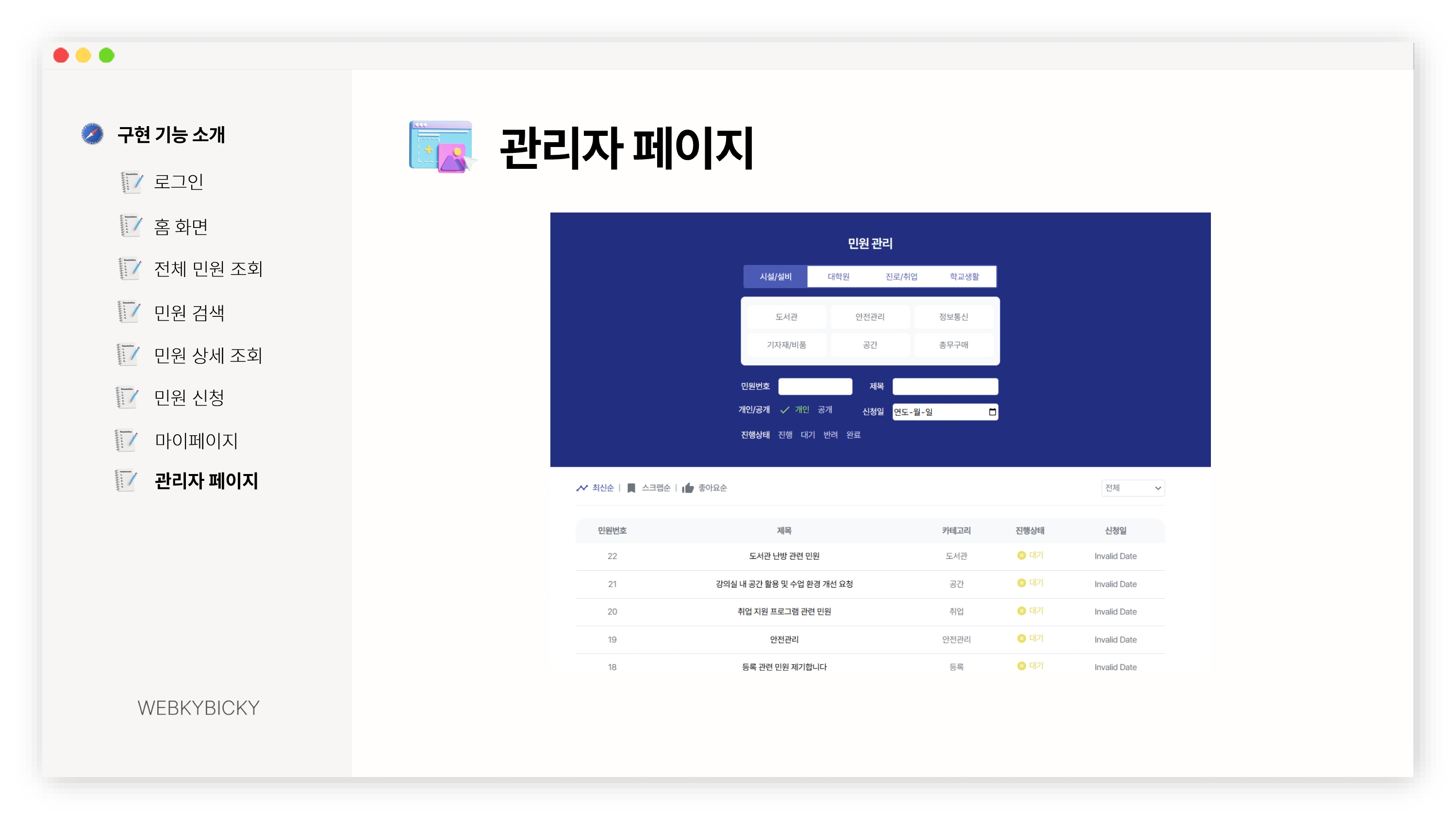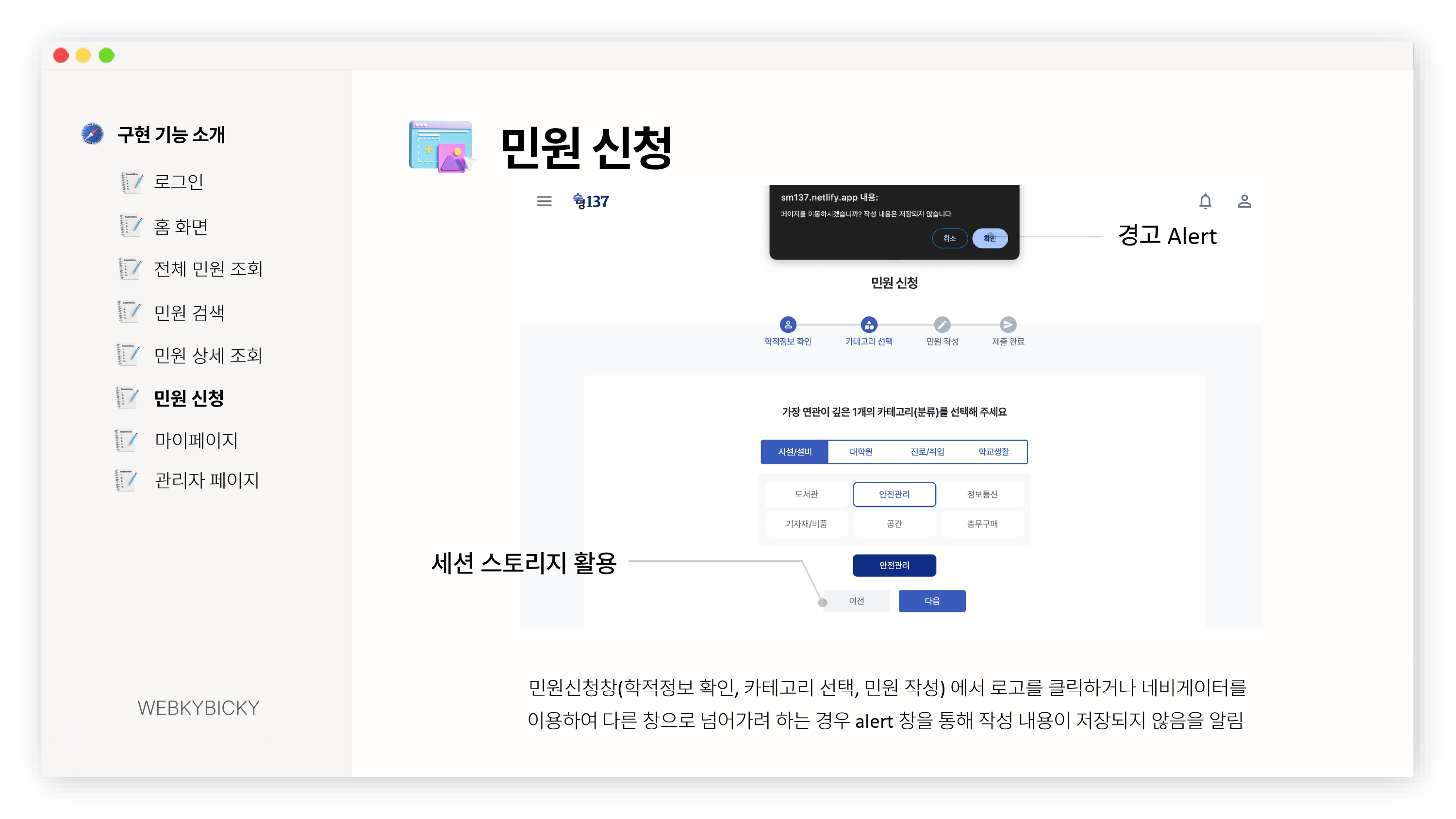 프로젝트 설명 : 기존 숙명여대 민원 시스템의 효율성을 개선한 웹페이지