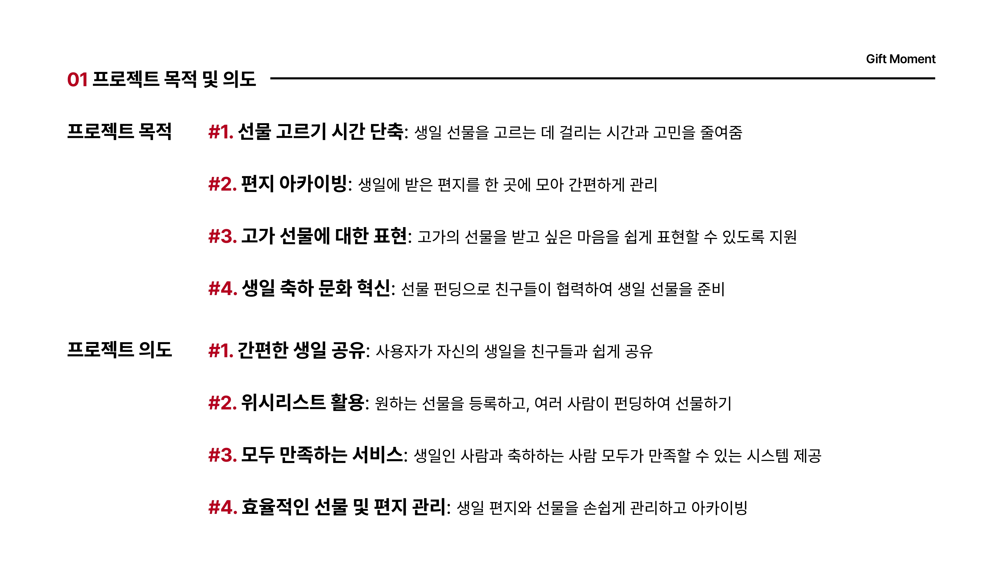 프로젝트 설명 : 친구의 생일을 쉽게 아카이빙하고, 선물 펀딩으로 함께 기념하기