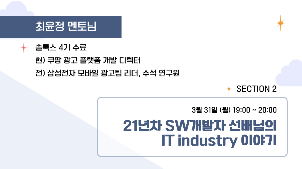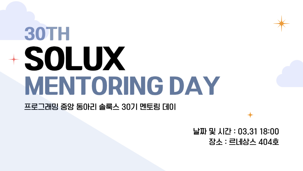 지난 3월 31일, SOLUX를 수료하신 선배님들의 소중한 경험과 다양한 노하우를 나눌 수 있는 뜻깊은 시간인 멘토링 데이가 진행되었습니다.