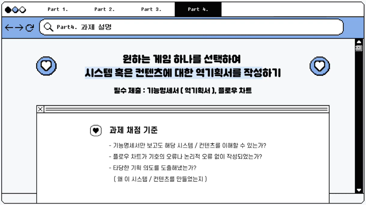 이번 과제는 임의로 게임을 선택하여 시스템 또는 컨텐츠에 대한 역기획서를 작성하는 것이었습니다.
