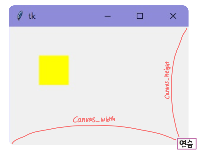 앞으로 우리가 사용할 캔버스 관련 코드는 mainloop() 위에 위치할 겁니다. mainloop()을 잘 기억해 주세요!😊