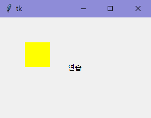 위 코드를 master. mainloop() 윗 부분에 추가하여 노란색 사각형이 그려지는지 확인해 보세요!