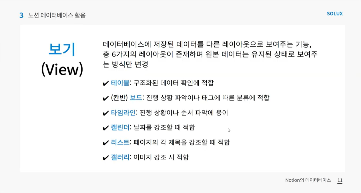 이번 세션에서는 직접 데이터베이스를 생성하고 다양한 속성을 설정해 본 뒤, 주제와 목적에 맞게 레이아웃을 바꿔보며 노션의 효율성을 직접 체감해 보았습니다.
