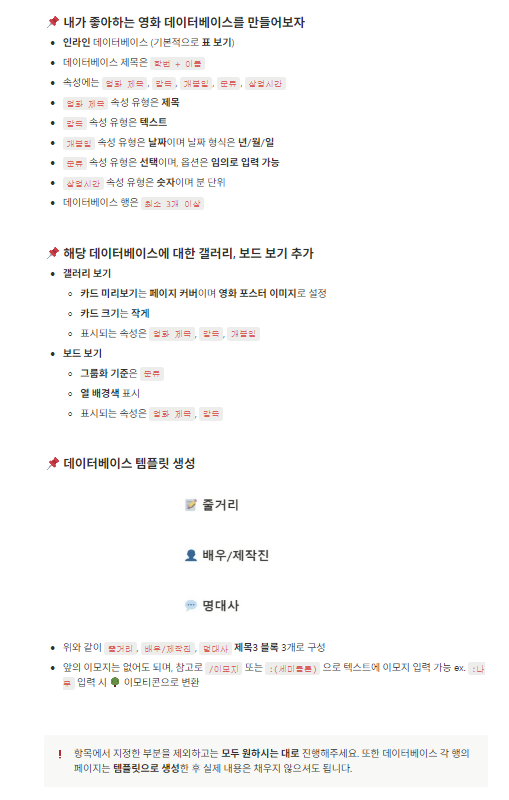 이번 과제는 노션의 다양한 기능을 활용하여 영화 데이터베이스를 만드는 것이었습니다.