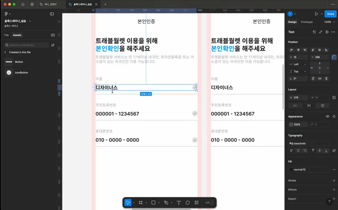 이번 과제는 디자인 시스템을 활용해 트래블월렛의 '본인인증' 화면을 따라 그리는 것이었습니다.