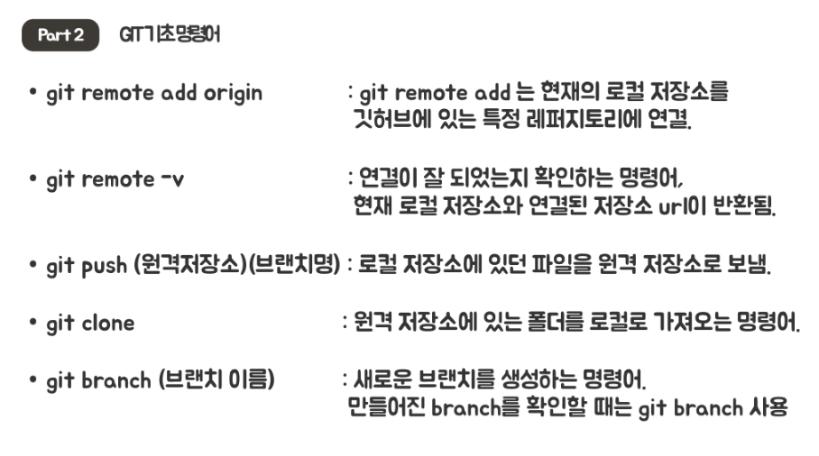 기초 설정을 마친 후에는 본격적으로 깃 명령어에 대해 배워보는 시간을 가졌습니다.