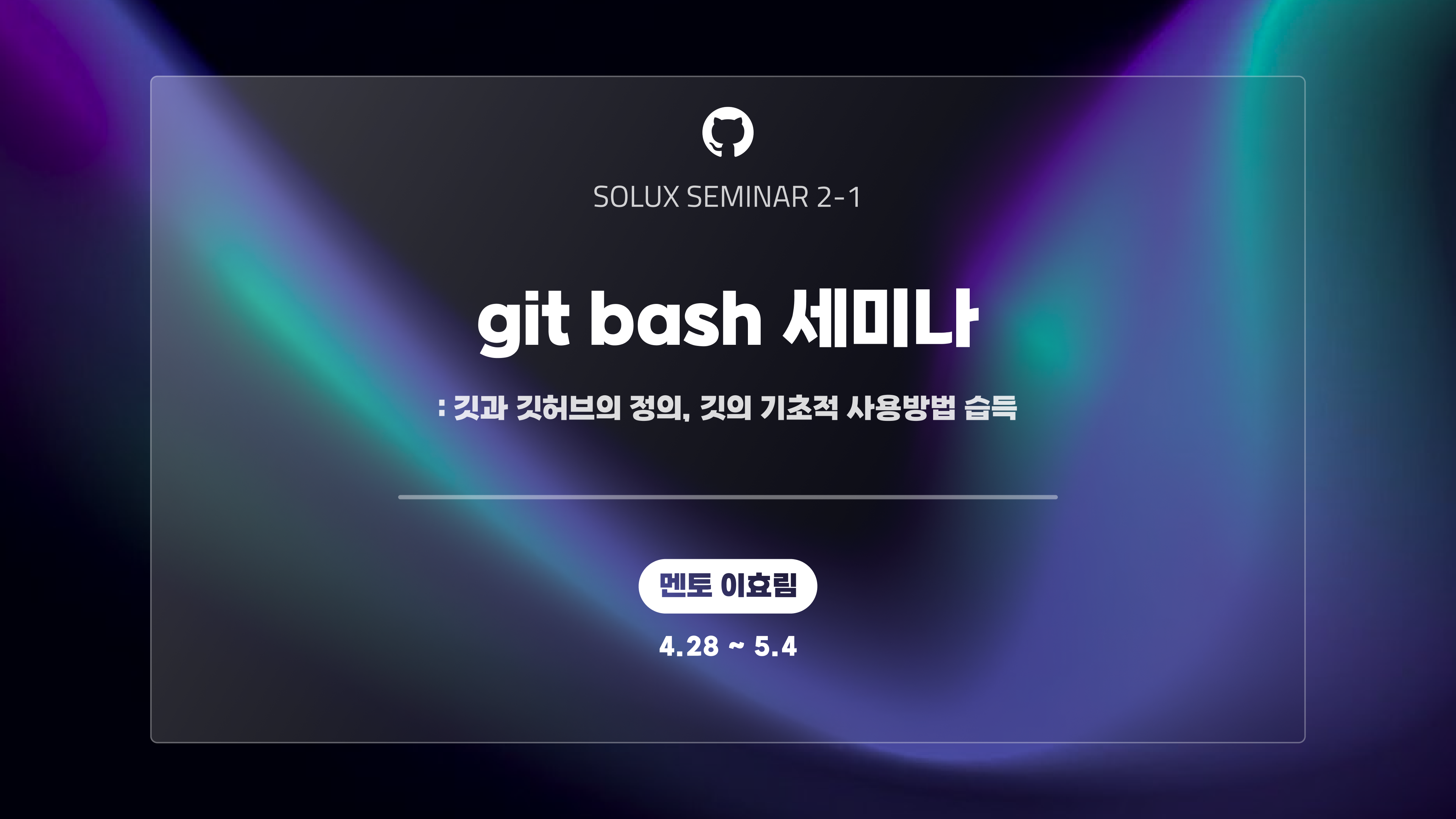 이번 세미나는 중간고사 이후 진행하는 2차 세미나 중에서 2번째 파트는 Git Bash 파트입니다 !