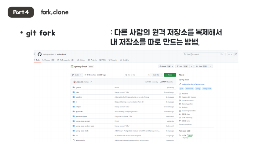 마지막 파트에서는 깃허브에서 자주 사용되는 fork와 clone의 개념을 다루었습니다.