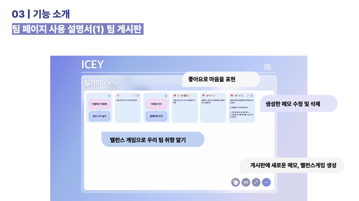- 팀 게시판 기능 (감정 표시, 밸런스 게임)