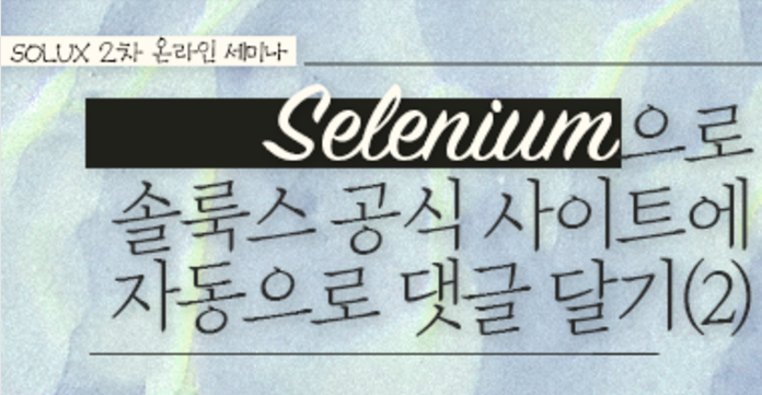 앞에서 배운 Selenium의 여러 기능들을 이용하여, 이제부터는 솔룩스 공식 사이트(https://solux.tistory.com/)에 접속하여 자동으로 댓글을 달아 보도록 하겠습니다!