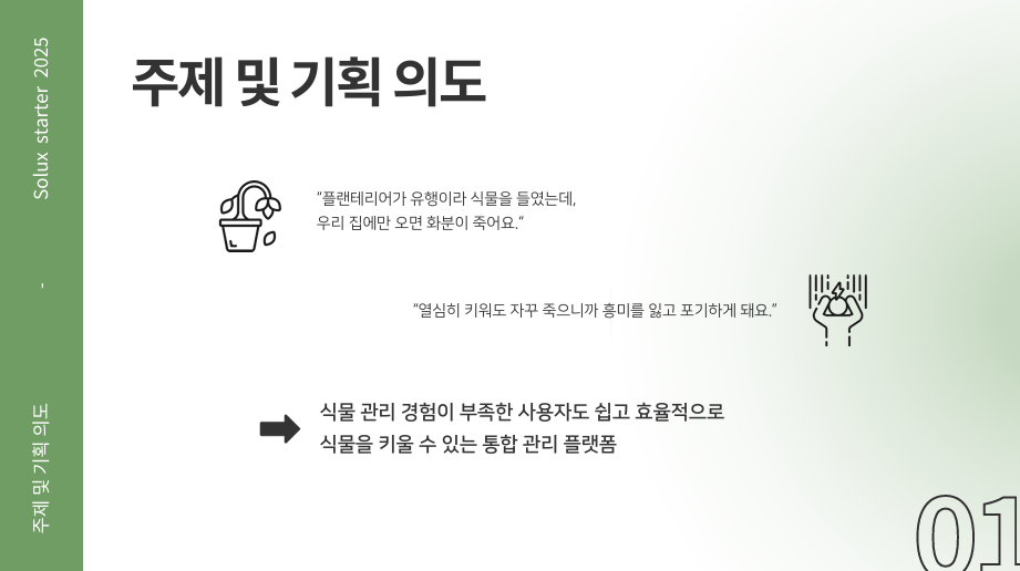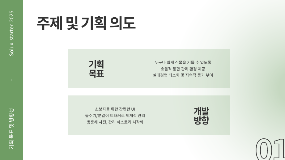 프로젝트 설명 : 식물 관리 경험이 부족한 사용자도 쉽고 효율적으로 식물을 키울 수 있는 통합 관리 플랫폼