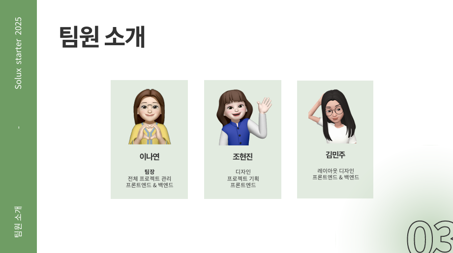 - 이나연(팀장), 조현진, 김민주
