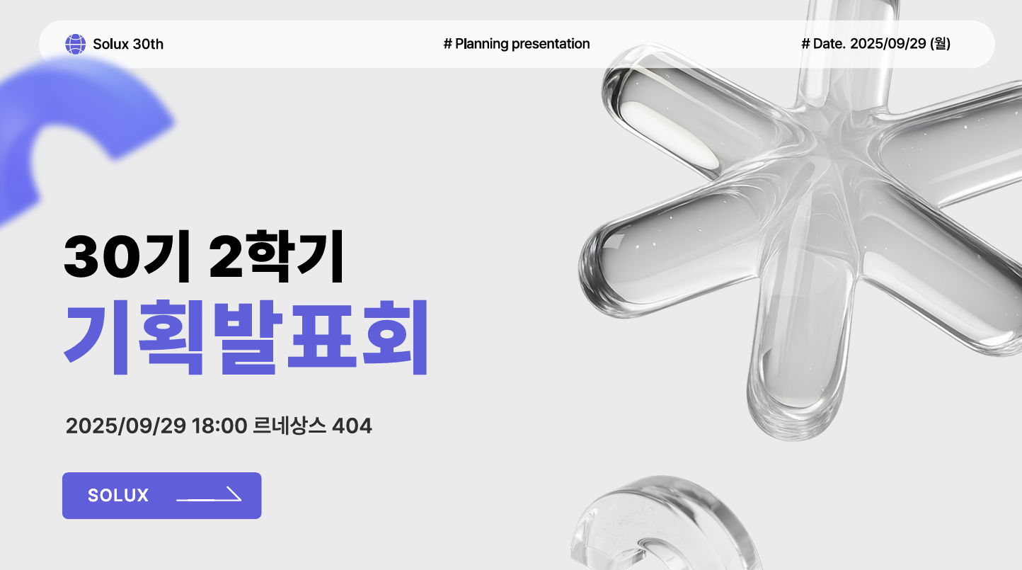 30기의 두 번째 기획발표회를 위해 준비해주시고 애써주신 모든 분들께 감사드리며, 솔룩스 30기의 모든 프로젝트들을 진심으로 응원합니다! 모두 수고하셨습니다!