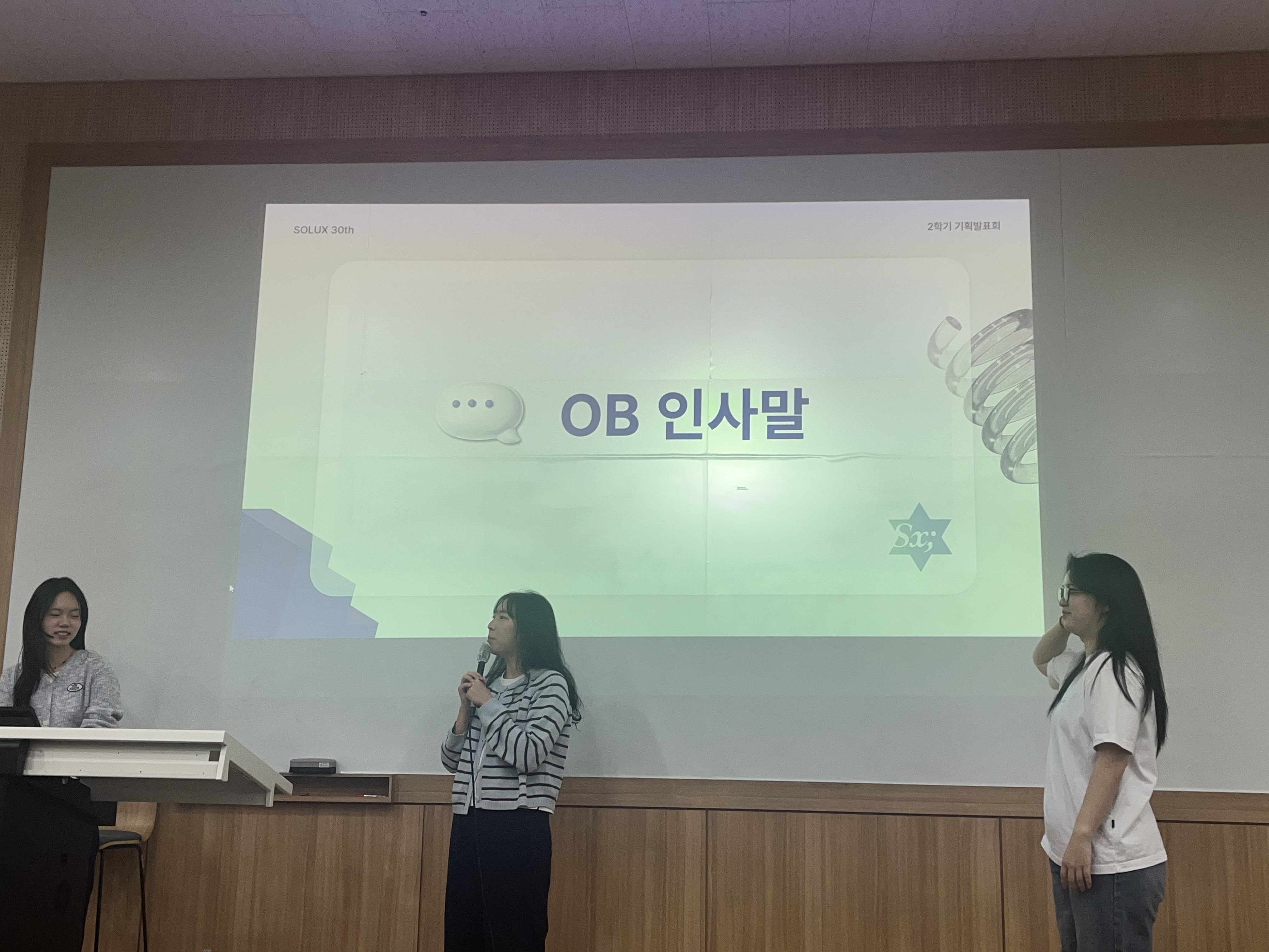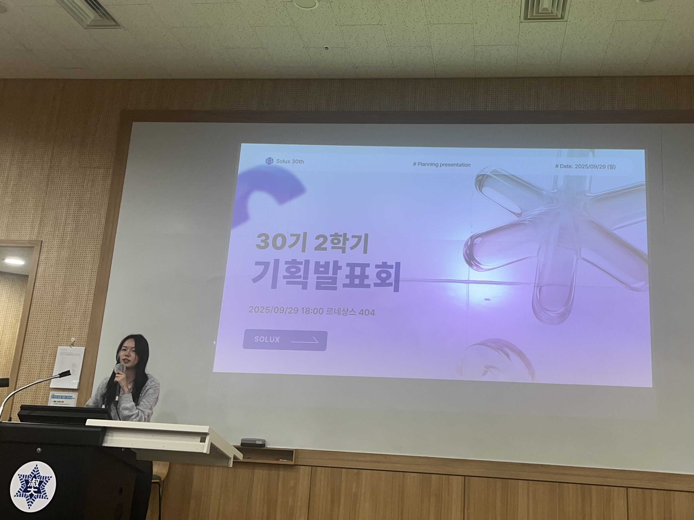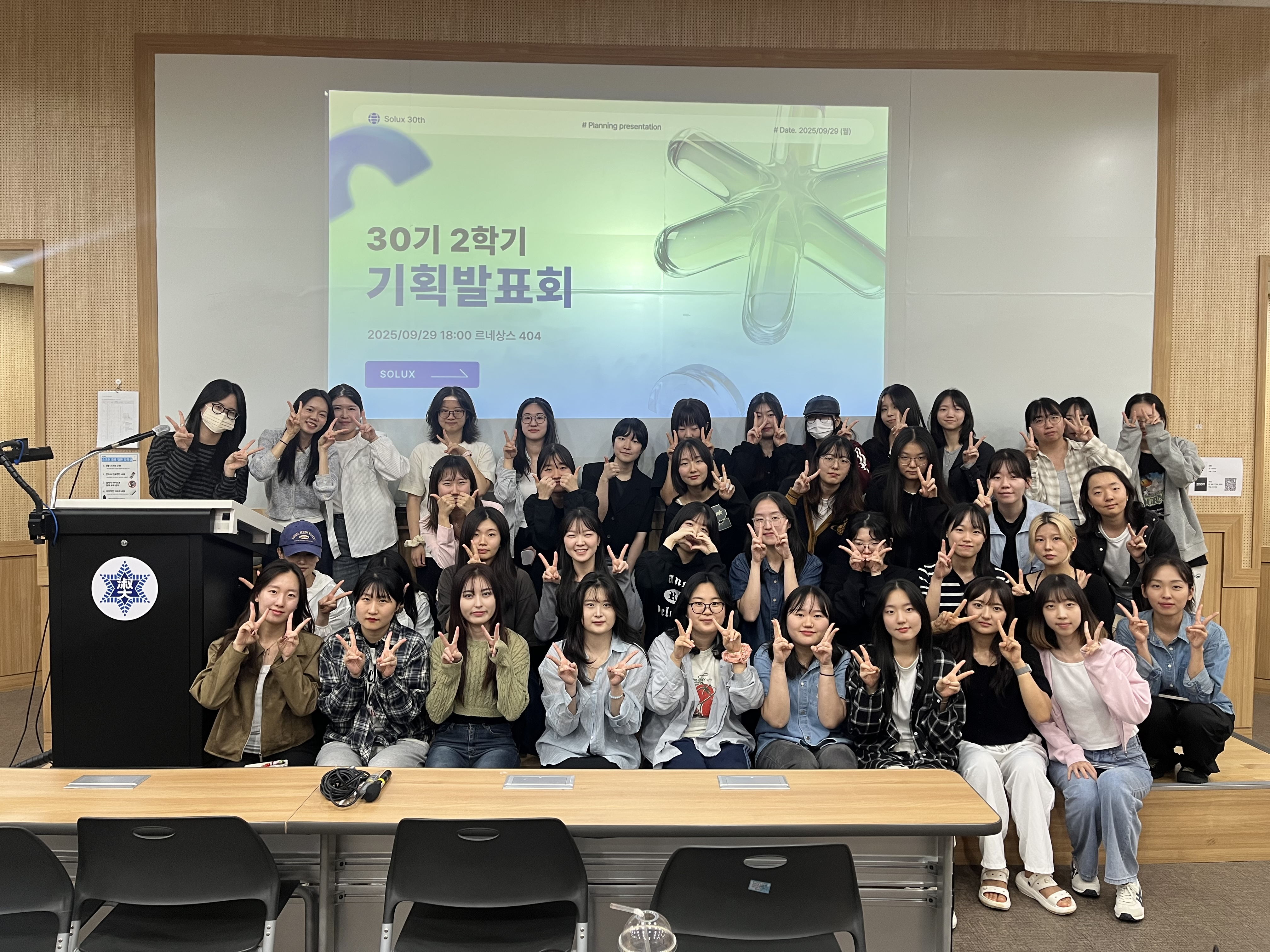 지난 9월 29일, 솔룩스 30기의 두 번째 프로젝트인 '2학기 기획발표회' 가 진행되었습니다. 1학기 최종발표회 이후 오랜만에 모든 부원들이 한자리에 모인 시간이었는데요, 이번에도 특별히 참석해 주신 OB 부원들의 격려와 응원 속에 부원들은 마음을 더욱 다잡고 행사를 시작할 수 있었습니다.