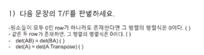 행렬식이 0이라면 Rank가 n이 될 수 없다는 점도 함께 배웠습니다!