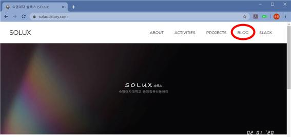 그 다음으로는 원하는 글이 있는 페이지에 접속해야 합니다. 글에 접속하려면, 메인 페이지에서 상단의 'BLOG'를 클릭해야 합니다.