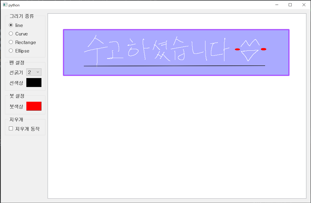 와!! 이제 드디어 파이썬으로 그림판을 완성했습니다~