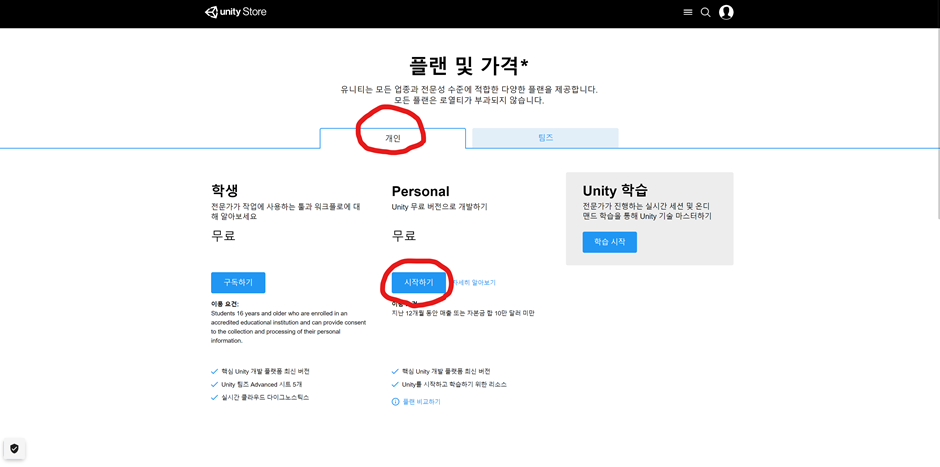 그리고 나서, 개인 탭의 Personal의 시작하기 버튼을 눌러줍니다.