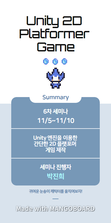 안녕하세요, 여러분! 눈송이 게임 세미나를 맡게 된 박진희입니다.