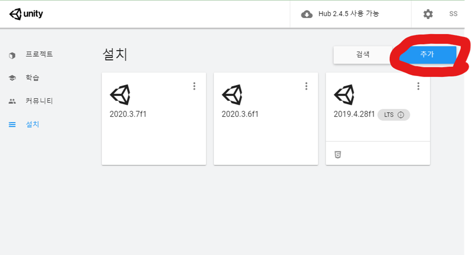 그렇게 설치 후에 Unity hub를 켜보시면 왼쪽 탭에 설치 탭이 있습니다.