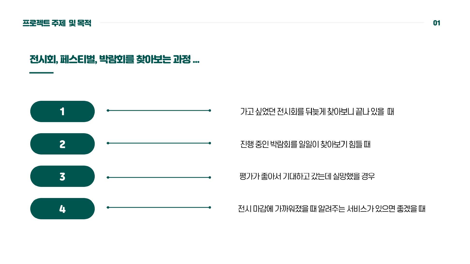 - 가고 싶은 전시회나 박람회, 페스티벌을 찜해 모아 볼 수 있는 기능
