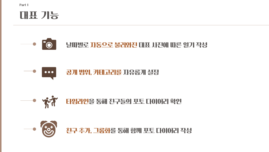 - 타임라인을 통해 친구들의 포토 다이어리 확인