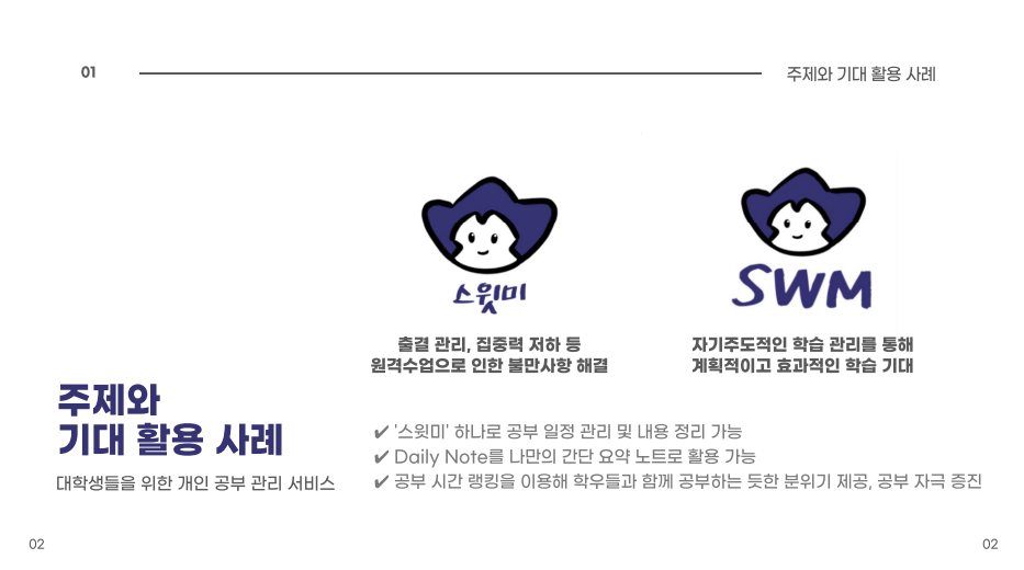 - 비대면 학기 중 대다수의 대학생들이 학습관리 부분에서 느끼는 불만족을 완화하고 대학생들의 자기주도적 학습에 도움을 주고자 개발됨.