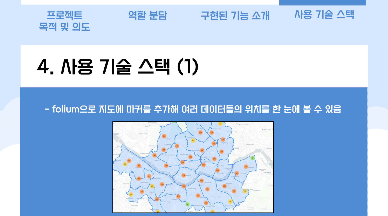프로젝트 설명 : folium을 이용한 국내 인기 여행지(맛집, 관광지) 추천
