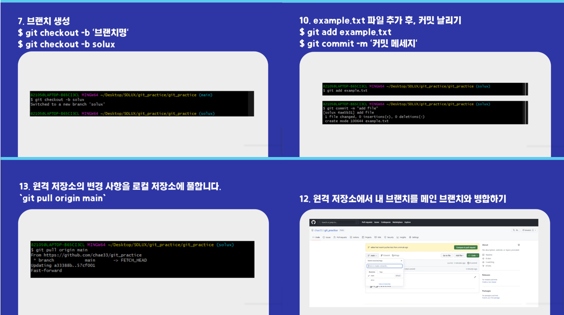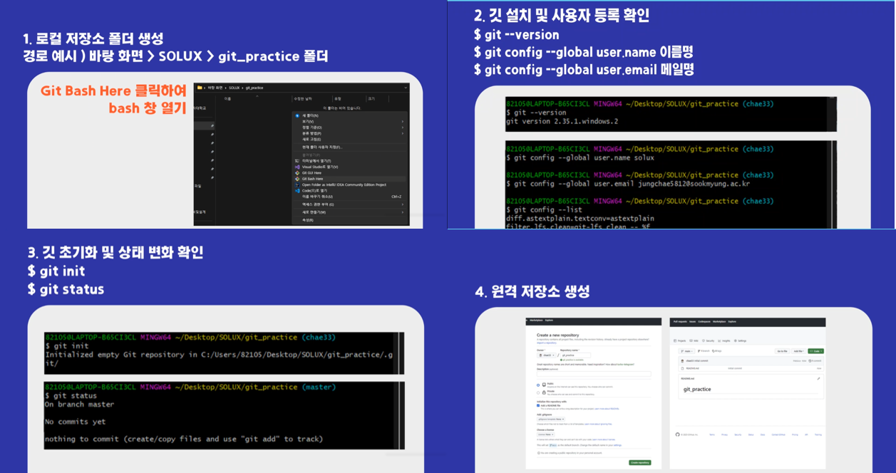 Git과 로컬 및 원격 저장소, 브랜치에 대한 용어를 익힐 수 있습니다.