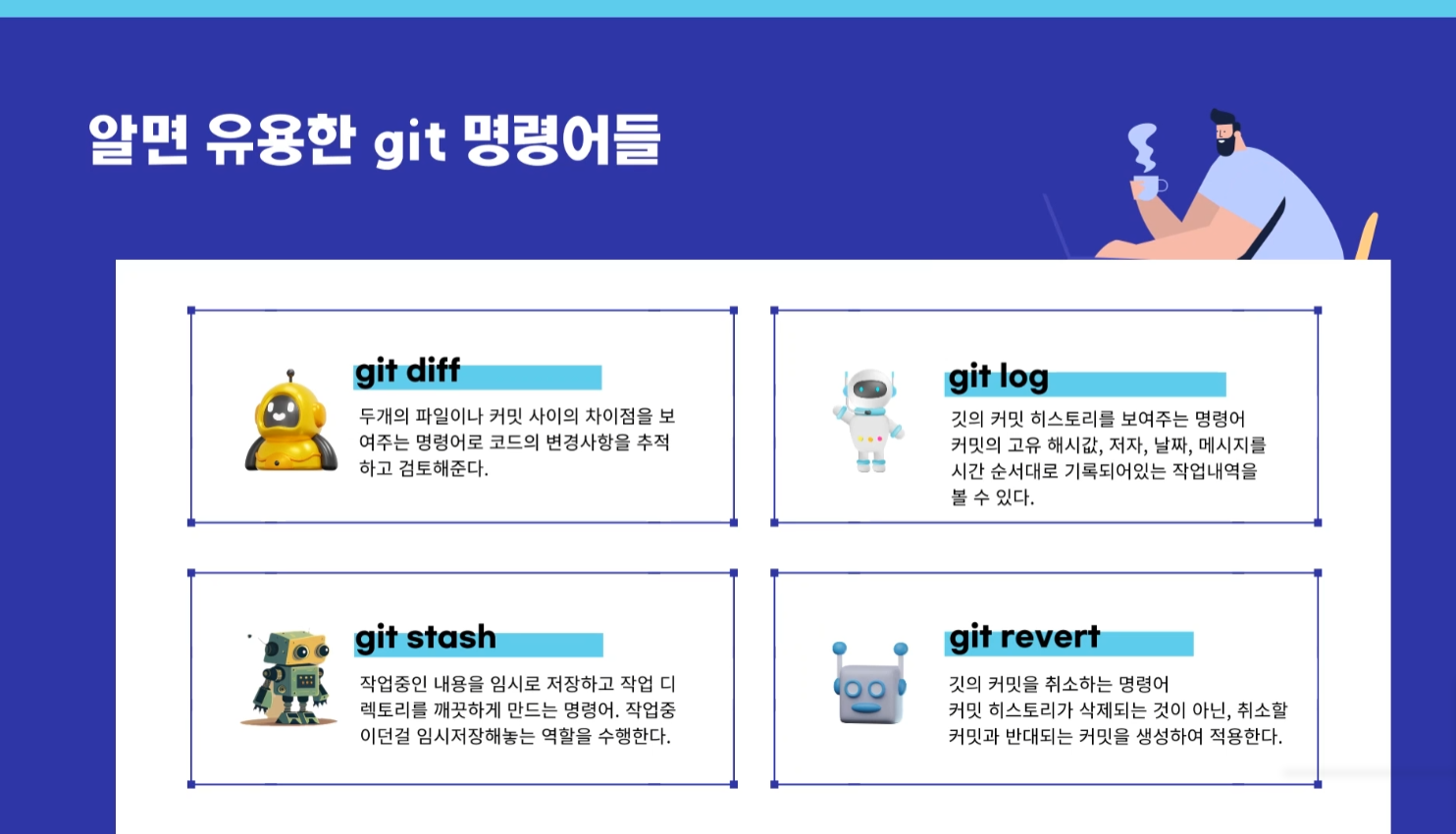 마지막으로, 그 외의 Git에서 사용하는 명령어들을 학습합니다.
