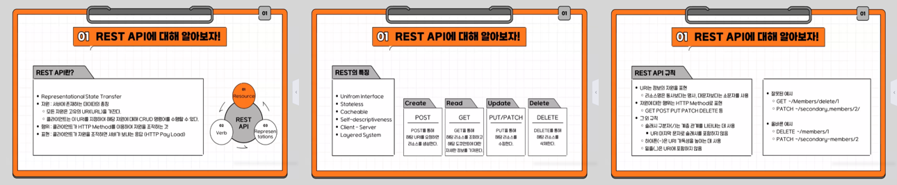 REST API의 기초적인 개념과 특징 소개를 통해 REST API가 어떤 것인지 알아보는 시간입니다.