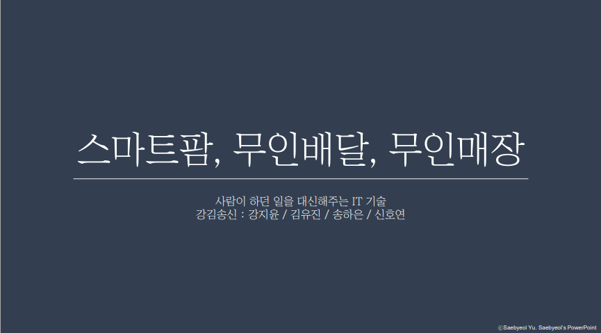 AI가 발전하면서 '기술이 사람을 대체할 수 있을까'에 대한 궁금증으로 무인기술에 대해 관심을 가지게 되었고, 무인 기술 중 스마트팜 / 무인배달 / 무인매장에 대해서 소개하고 있습니다.